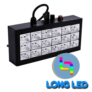 Đèn chớp led 18 bóng 7 màu phát ra ánh sáng flash RGB rất phù hợp cho buổi party hòa âm ánh sáng và âm nhạc như Disco club, bar DJ hay phòng trà.