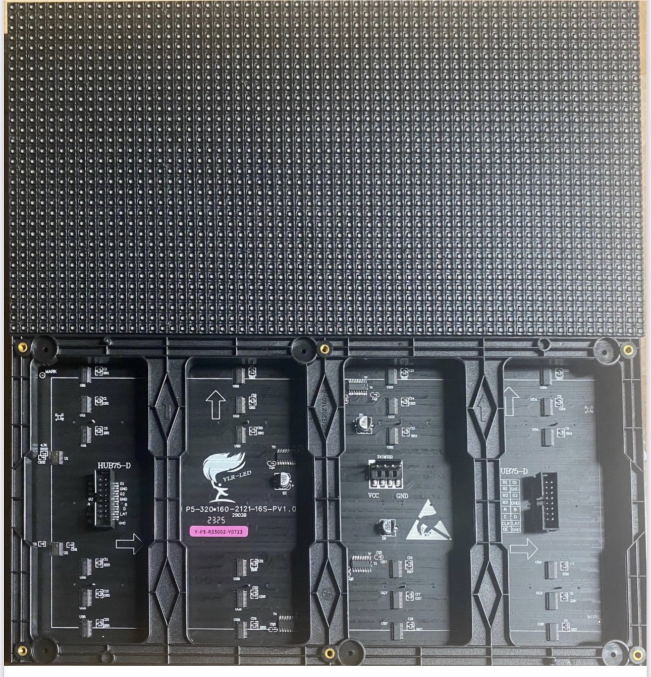 - Kích thước tấm LED P5 YLR: 320 * 160 * H mm