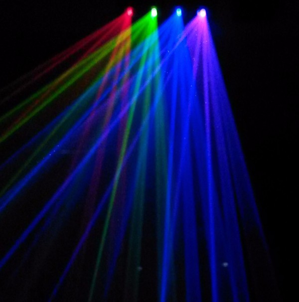 Đèn laser 4 cửa 4 màu quét tia, quét hình cực kỳ sôi động cho vũ trường, sân khấu, nhà hàng tiệc cưới, quán bar, phòng hát kraoke.