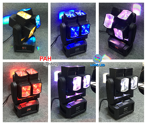 Moving 8 mắt led phong hỏa luân siêu sáng full màu 4in1 với tổng công suất gần 100W .Thiết kế đèn hiện đại không đụng hàng cách xoay và quét tia độc đáo, đánh sôi động cho không gian 30 mét vuông. Thích hợp sử dụng cho phòng karaoke Vip, cafe DJ, Bar mini, Beer club.sân khấu đám cưới.